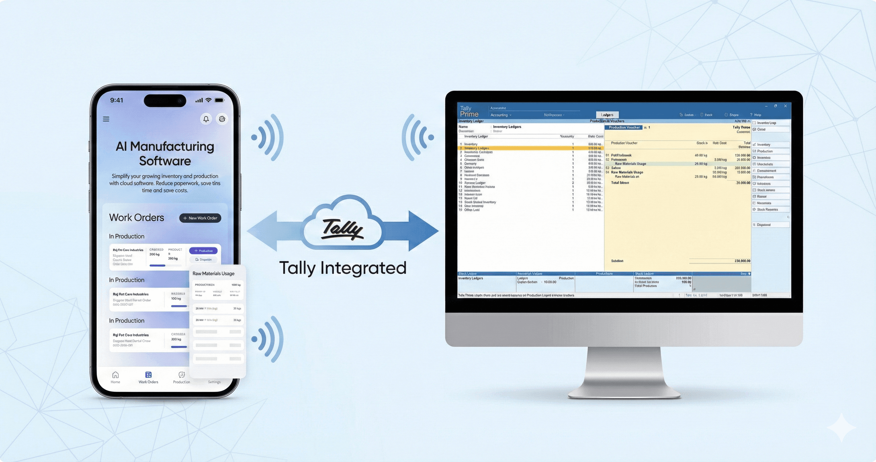 If you're running a small manufacturing unit in India, chances are you're already using Tally for accounting. But here's the daily frustration: your accountant enters purchase receipts in Tally, then your shop floor supervisor has to manually update the same information in their production register or Excel sheet.